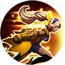 • โบนัสโจมตี: การโจมตีปกติใส่ฮีโร่ที่ติดเครื่องหมายจะสร้างความเสียหายเพิ่ม 120/144/168/192/216/240 (+30% AD) (ครีป/มอนสเตอร์ป่า โดนแรงขึ้น 2 เท่า)